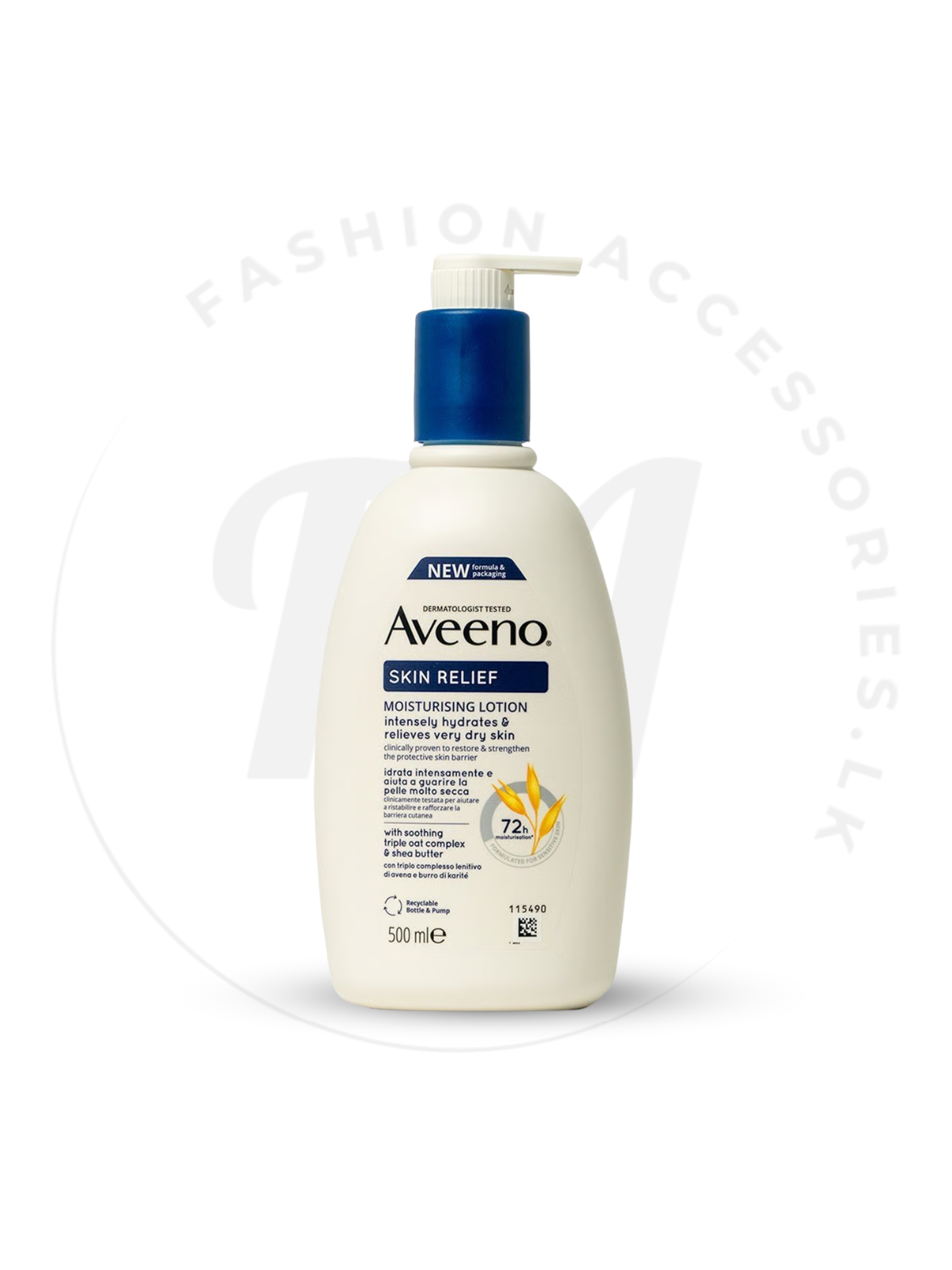 Aveeno Skin Relief Nourishing Lotion is a rich, fast-absorbing body lotion specially formulated to soothe very dry and sensitive skin from the very first application. Powered by a Prebiotic Triple Oat Complex (Avenanthramides, Oat Oil, and Colloidal Oatmeal) and enriched with shea butter, it deeply nourishes and helps restore the skin’s natural barrier function.