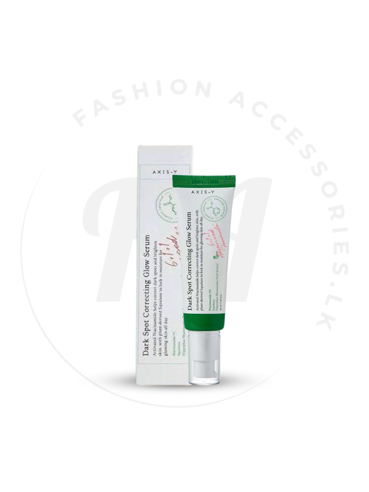 AXIS-Y Dark Spot Correcting Glow Serum යනු 5% Niacinamide සහ Squalane එකතුව මගින් සමේ අඳුරු ලප, පැහැ විකෘති වීම, සහ තෙත්කම අඩුවීම අඩු කරන දිලිසෙන සෙරම් එකකි. සමේ පිරිසිදුකම හා දිලිසෙන පෙනුම නැවත ලබා දීමට මෙය උපකාරී වේ.