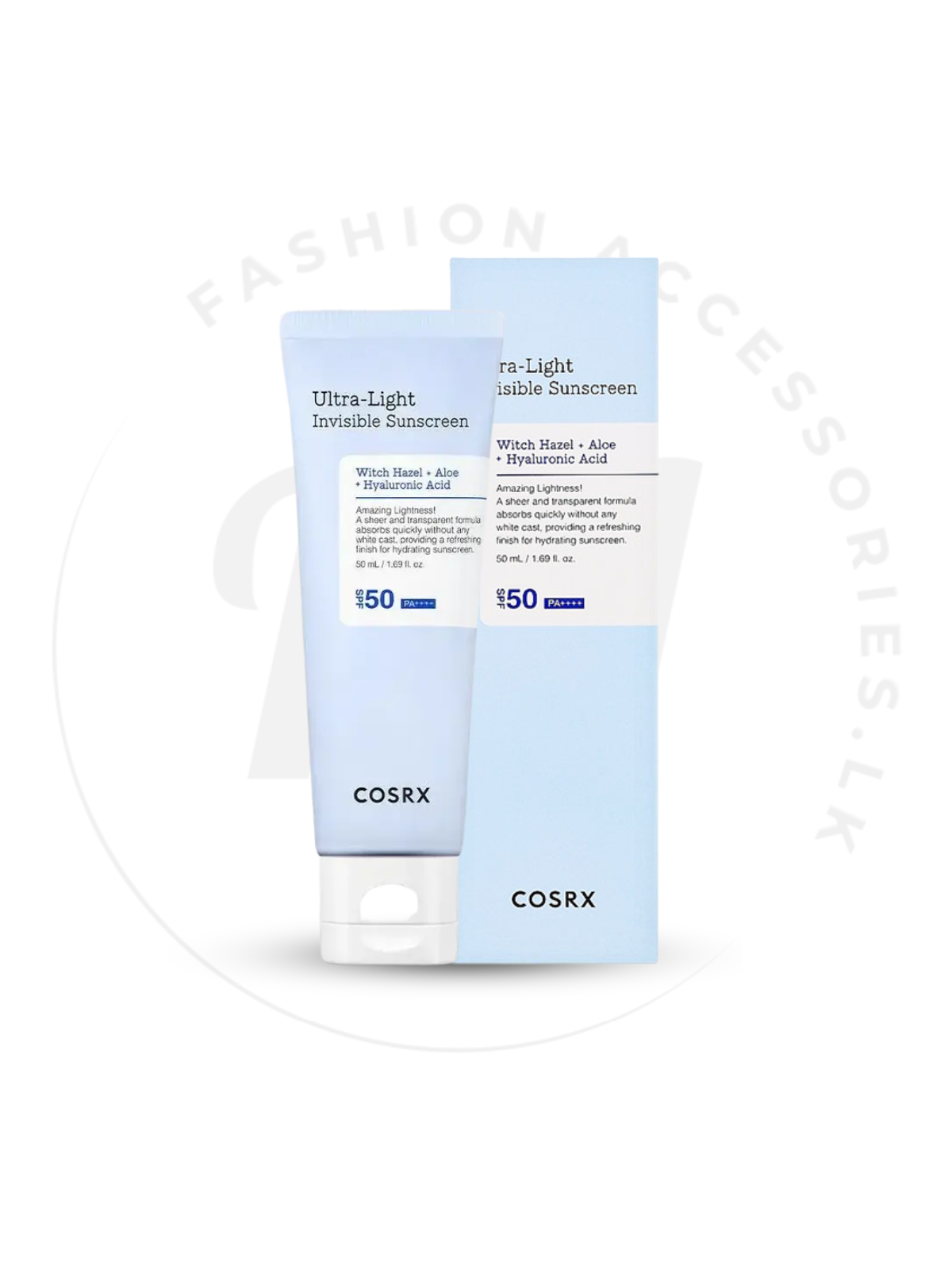 COSRX Ultra-Light Invisible Sunscreen යනු දිවයිනේ උෂ්ණ හා තෙත් වාතය සඳහා සුදුසු, මෘදු හා ලිහිල් සන්ස්ක්‍රීන් එකකි. මෙම SPF50 PA++++ ආරක්ෂාව UVA හා UVB කිරණ වලින් සම ආරක්ෂා කරයි. Aloe Vera, Witch Hazel, Niacinamide සහ Vitamin E එකතුව මගින් සම තෙත් කරමින්, අසාත්මිකතාවය අඩු කරයි.