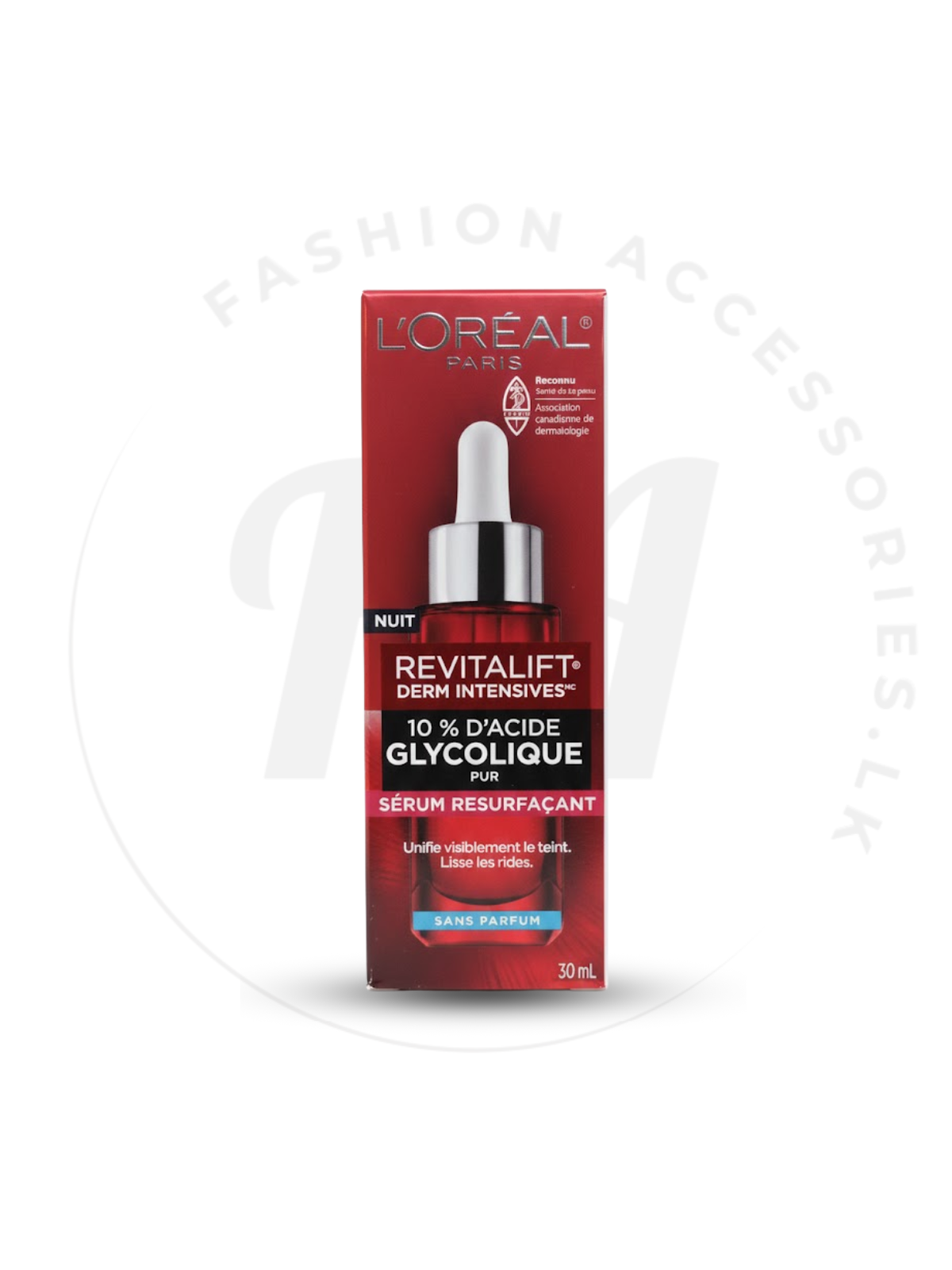 L’Oréal Revitalift Derm Intensives 10% Glycolic Acid Night Serum යනු රාත්රී කාලයේදී සම renew කර, dark spots, uneven skin tone සහ rough texture අඩු කරගැනීමට උපකාරී resurfacing serum එකකි. 10% Pure Glycolic Acid එකතුව සම මෘදුව exfoliate කර dead skin cells ඉවත් කර, smooth සහ radiant complexion එකක් ලබාදෙයි. නිතර භාවිතයෙන් සම පැහැදිලි, even-toned සහ youthful ලෙස පෙනේ. Sans Parfum (fragrance-free) නිසා sensitive skin සඳහාද සුදුසුයි.