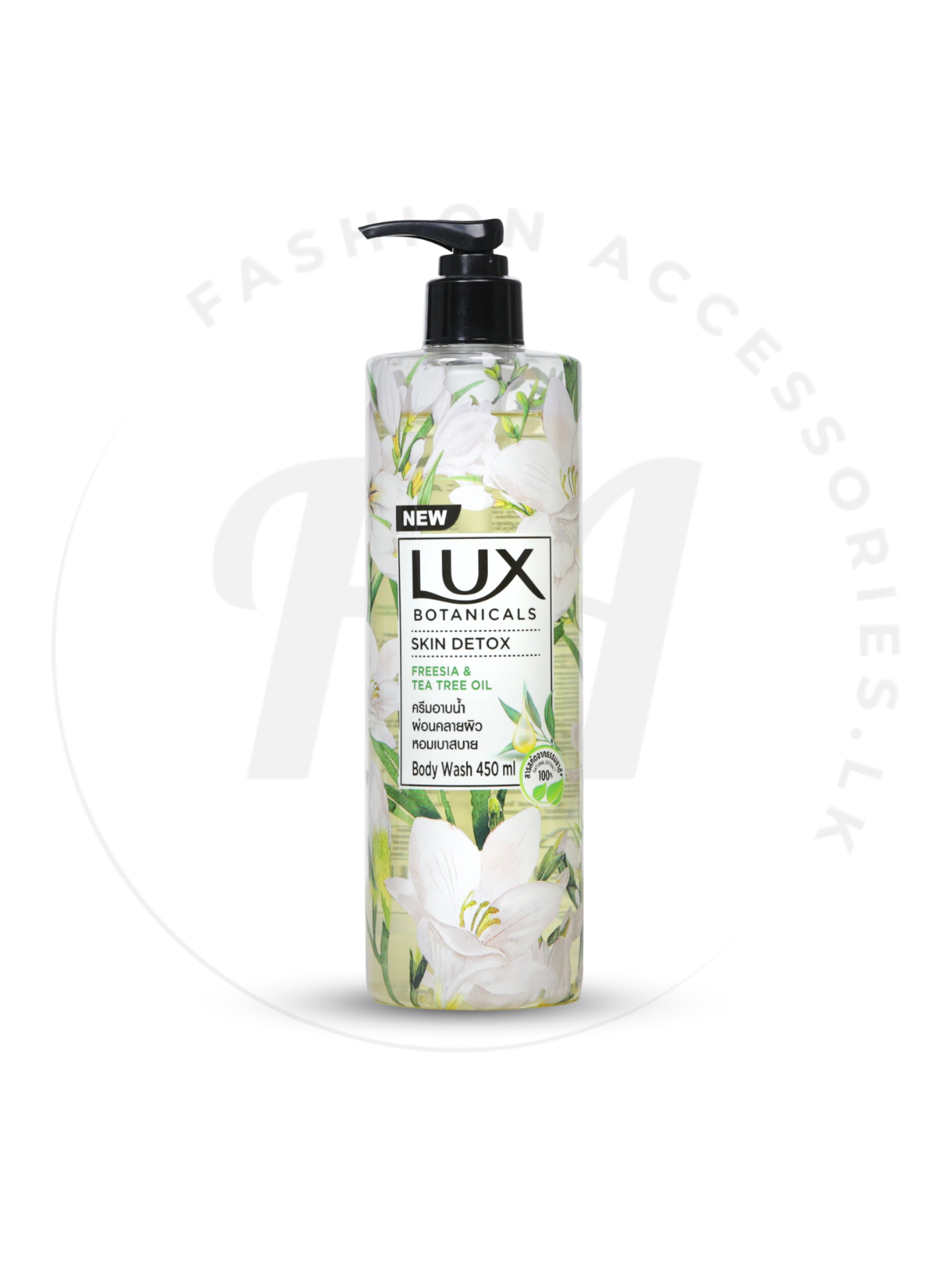 LUX Botanicals Skin Detox Body Wash specially සකස් කරේ ඔබගේ සමය තුළ ඇති දිනපතා ඇමුණුම්, දූෂණ, තෙල් සහ අවිශ්වාසිත ගන්ධ අහෝසි කරමින් සම්පූර්ණ detox cleansing effect එකක් ලබා දීමටයි. Freesia සාරය සහ Tea Tree Oil වැනි ප්‍රබල ස්වාභාවික botanical oils එකතුව, සමයට තප්පුලන සුවඳක්, මෘදු බවක් සහ පිරිසිදු බවක් ලබා දේ. මෙම paraben-free natural extract formula එක, සමයේ natural moisture balance එකට හානි නොකර මෘදු ලෙස පිහිනවමින් දිගුකාලීන fresh feeling එකක් ලබා දෙනවා. දිනපතා භාවිතයට සුදුසු මෙම body wash එක, oily skin, polluted skin, dull skin වැනි තත්ත්වයන්ට පවා deep detox action එකක් ලබා දෙයි.