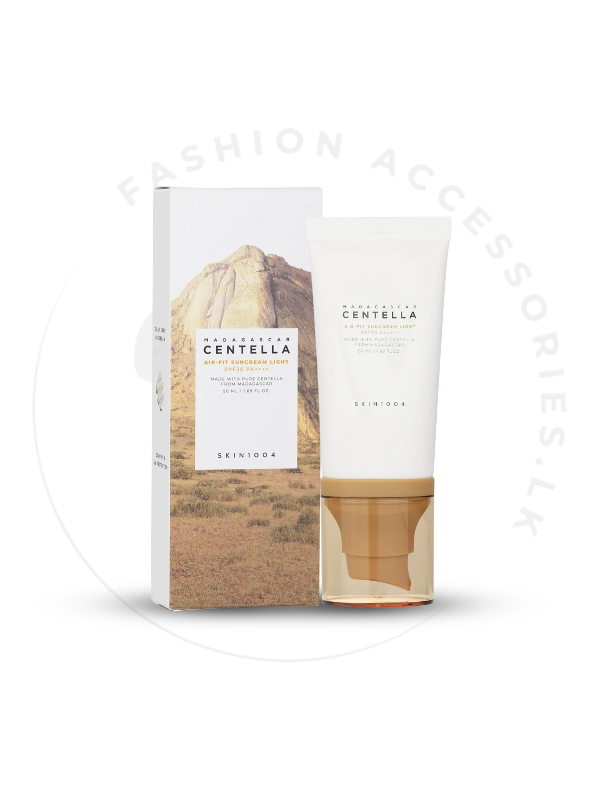 SKIN1004 Madagascar Centella Air-Fit Suncream Light SPF30 PA+++ යනු ඉතා සැහැල්ලු, oily feeling නොතිබෙන sunscreen එකක් වන අතර, UVA/UVB කිරණ වලින් සම ආරක්ෂා කරයි. මැඩගස්කරයේ Centella Asiatica සාරය සමේ ඉරිතද, රතුබව අඩු කරමින් skin barrier එක ශක්තිමත් කරයි. මේ airy, smooth texture එක සමේ මතුපිට මෘදු ලෙස මැස්සී හෝ white cast එකක් නැතුව blend වේ. oily, combination සහ sensitive skin ඇති අය සඳහා ඉතා සුදුසු දෛනික sunscreen එකකි.