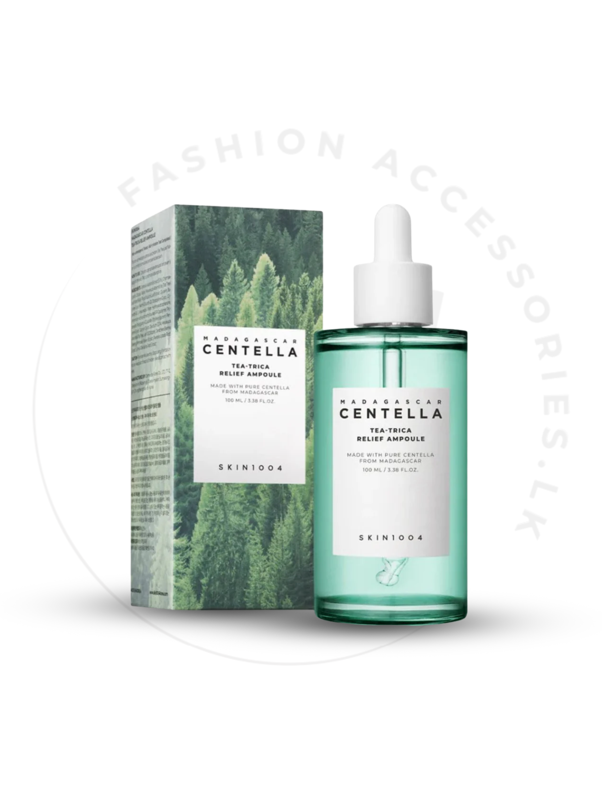 SKIN1004 Madagascar Centella Tea-Trica Relief Ampoule යනු ඇට සම, තෙල් වැඩි සම, හෝ acne ඇති සම සන්සුන් කර පිරිසිදු කිරීමට නිර්මාණය කළ ampoule එකකි. Pure Centella Asiatica සාරය හා Tea Tree complex එකතුව සමේ ඉරිතද, රතුබව, හා sebum වැඩීම අඩු කරයි. ඉතා සැහැල්ලු watery texture එක ඉක්මනින් අවශෝෂණය වී irritated skin එකට සන්සුන්කම සහ නවීකරණයක් ලබාදෙයි. oily, sensitive, හා breakout-prone skin සඳහා ඉතා සුදුසු ampoule එකකි.