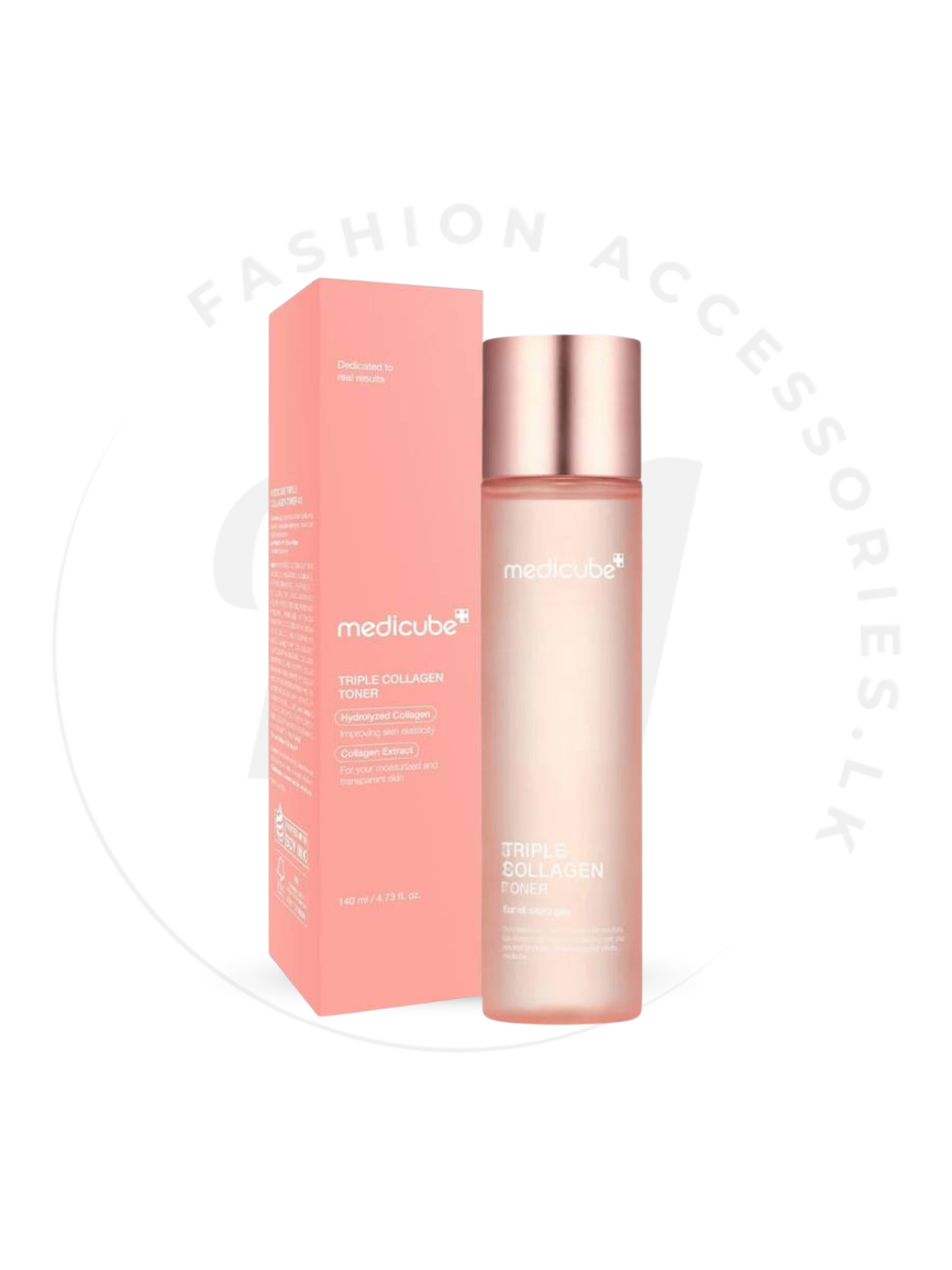 Medicube Triple Collagen Toner යනු තෙත්කම අඩු වූ සමට නිර්මාණය කළ, තෙත් හා තද බව වැඩි කරන විශේෂිත ටෝනර් එකකි. Triple Collagen, Hyaluronic Acid සහ Niacinamide එකතුව මගින් සම දිලිසෙන, මෘදු හා යෞවන පෙනුමක් ලබා දෙයි.