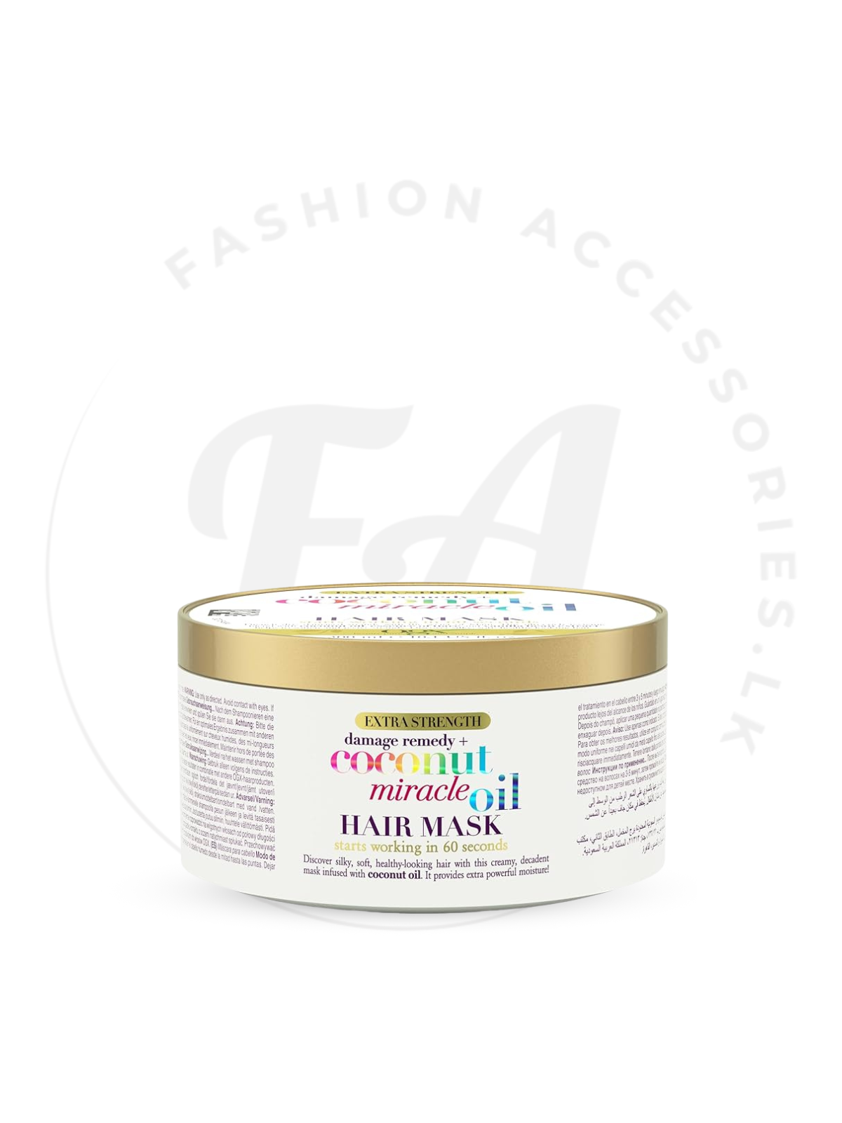 OGX Coconut Miracle Oil Hair Mask is an intensive, ultra-rich treatment created to revive and restore dry, brittle, and damaged hair. Infused with nourishing coconut oil, exotic tiare essence, and vanilla bean extract, this luxurious mask deeply conditions to smooth frizz, hydrate strands, and bring back natural softness and shine.