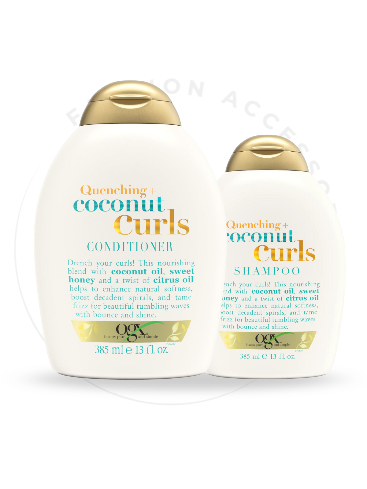 OGX Quenching+ Coconut Curls Conditioner යනු පොල් තෙල්, මධු සාරය සහ සීට්රස් තෙල් අඩංගු රිච් කර්ල් හැඩගැසීමේ කොන්ඩිෂනර් එකකි. මෙය මෘදුව ආර්ද්ර කරමින්, කෙස් ගැටුම් ඉවත් කරමින්, ෆ්රිස් පාලනය කරමින් මධ්යම සිට දැඩි වර්ගයේ කර්ල්/වවේස් වලට පීලිම් සහ දිදුලීම වැඩි දියුණු කරයි. සල්ෆේට් සහ පරාබෙන් රහිතයි.