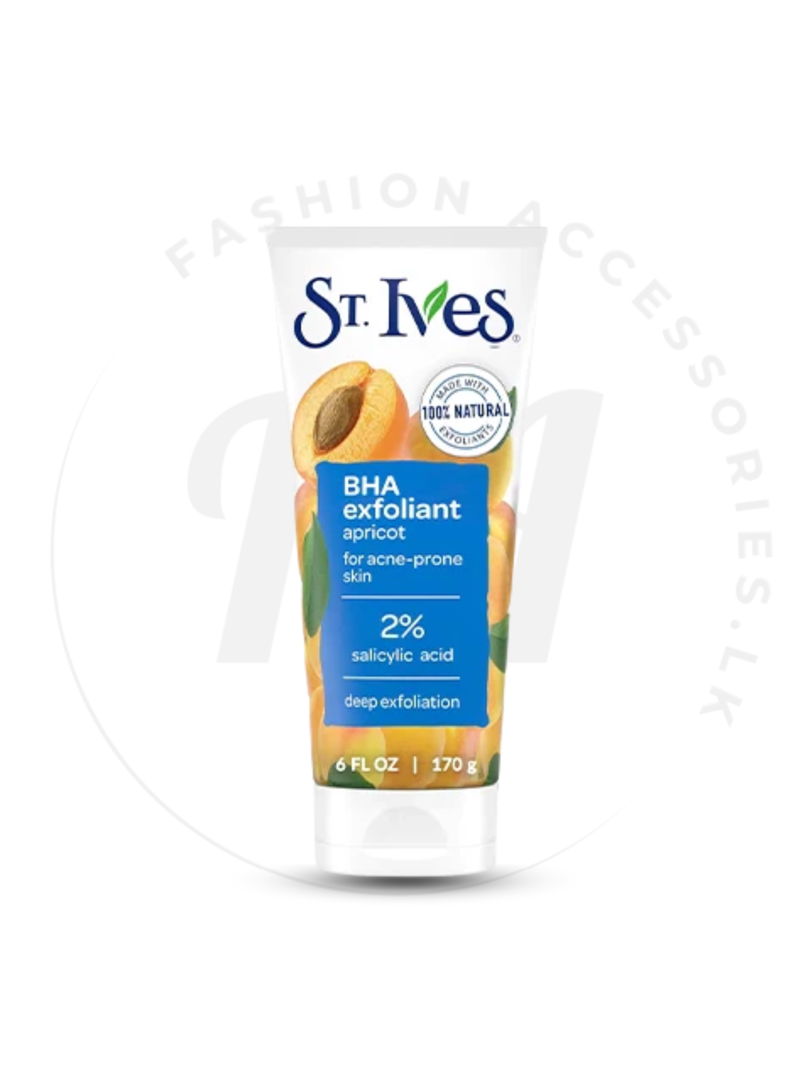 St. Ives BHA Face Exfoliant Apricot Facial Exfoliator (170g) is specially designed for acne-prone skin, delivering deep cleansing and gentle exfoliation to reveal a fresh, radiant glow. Enriched with natural apricot extracts and Beta Hydroxy Acid (BHA), this dermatologist-tested formula helps fight acne, unclog pores, and smooth rough skin texture. Ideal for daily use, it leaves your complexion soft, clear, and hydrated without harsh irritation—bringing the power of natural exfoliation to your skincare routine.