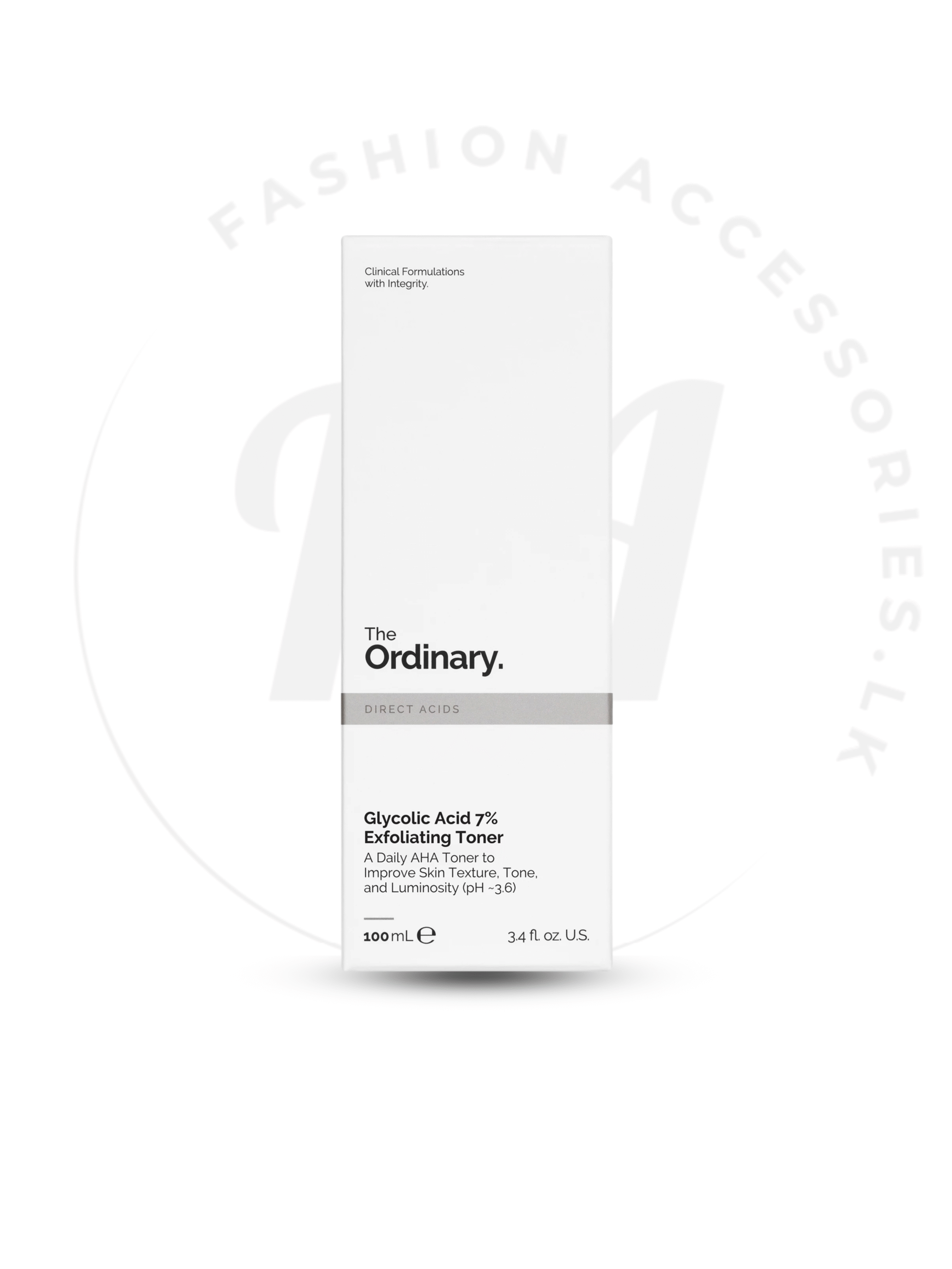 The Ordinary Glycolic Acid 7% Toner යනු සමේ පැහැදිලි බව, සමාන රූපලාවන්යය සහ තත්ත්වය වැඩිදියුණු කිරීමට උපකාරී මෘදු Exfoliant එකකි. Tasmanian Pepperberry extract එක නිසා වර්ණය සමහර අවස්ථාවල වෙනස් විය හැක. pH 3.6 න් සමනය කළ මෙම formula එක ග්ලයිකොලික් අම්ලයේ කාර්යක්ෂමතාව වැඩි කරමින් අස්ථාවරතාව අඩු කරයි.